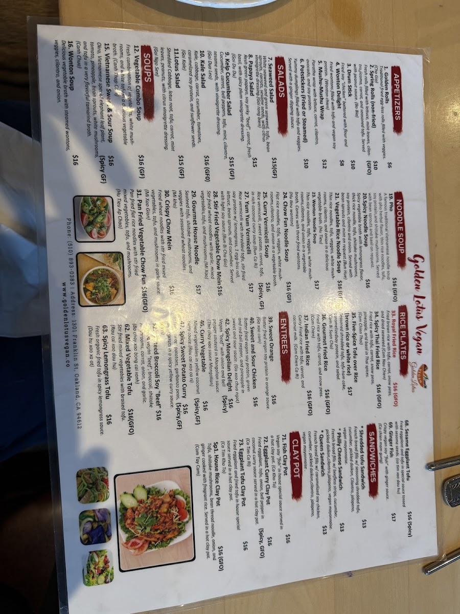 Golden Lotus offers a thoughtfully curated vegan menu that blends comforting traditional dishes with light, flavorful options. The menu invites a relaxed dining experience, ideal for sharing with friends or enjoying a quiet meal. You’ll find a variety of items suited for different occasions—whether grabbing a warming bowl of pho on a cool day, sipping on a creamy Thai iced tea, or sampling vibrant plates like the eggplant curry claypot or the crispy Golden Rolls.